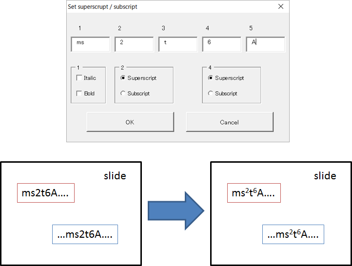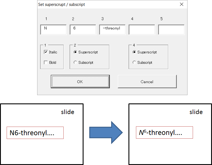 スライド作りで修飾塩基や化学名の上付き下付きなどの設定を大量にやる方におすすめです。